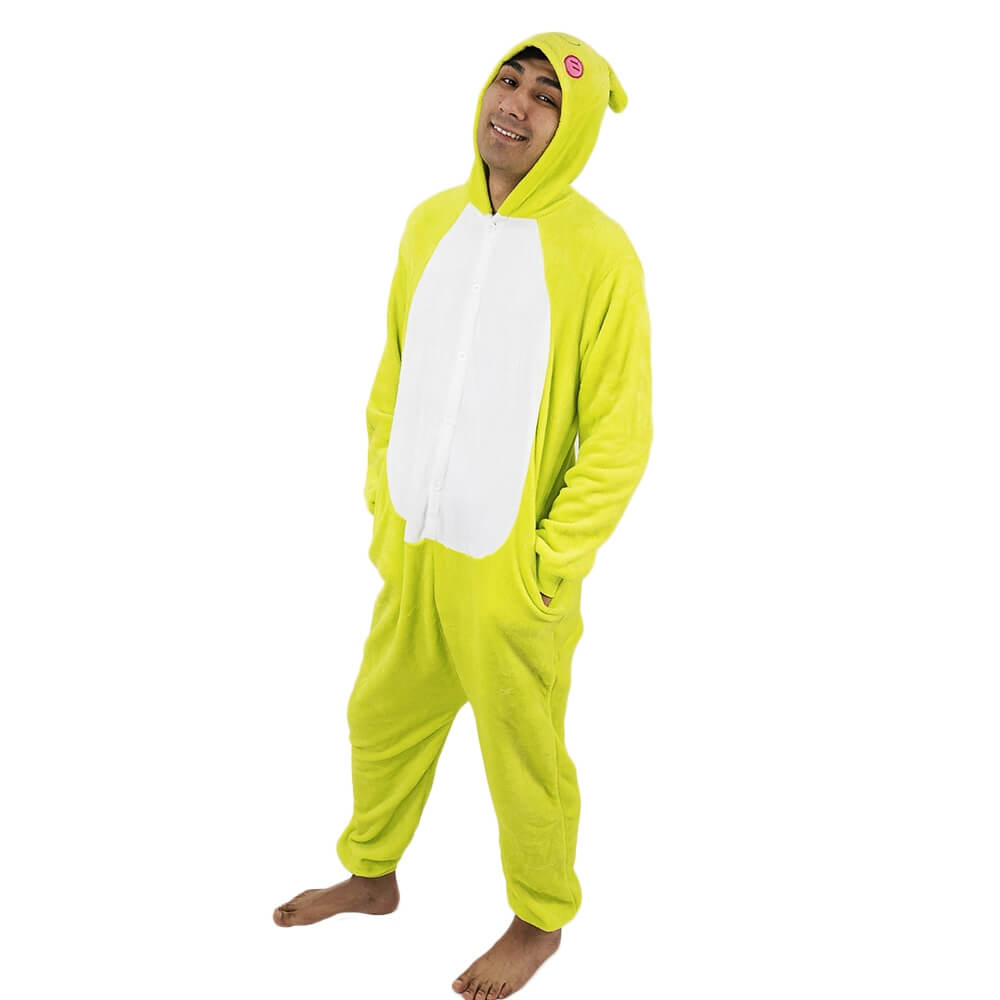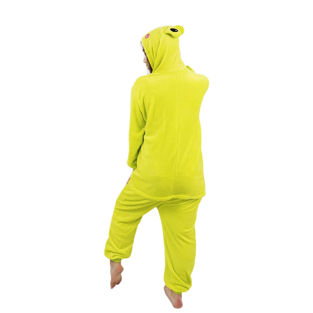 Кигуруми сочного желто-зеленого цвета поднимет настроение и создаст атмосферу веселья и праздника. Его можно надевать на вечеринку или костюмированный праздник, использовать как домашнюю одежду. Просторный крой не сковывает движения, дарит свободу. В нем удобно танцевать, прыгать, лежать на диване в любых позах.